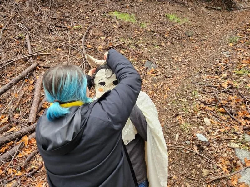 ECLIPSE is a film i created over the course of my junior year through 2 independent studies. unbeknownst to me at the inception of this film, there was actually a real-life eclipse to occur in april of 2024 as i was editing my final draft of the film. i spent the first semester solidly in pre-production, finding ways to translate my ideas of forest spirits and mischievous stars to the screen. i decorated masks, experimented with paper mache, sewed outfits, baked for a picnic, and spent hours location scouting. i enlisted 2 friends of mine to spend 2 days filming with me as SUN and MOON, the first day spent a couple of hours deep in the los angeles national forest and the other hours north to the beaches of malibu. though challenging to film, i was able to play around in editing with color correction and visual effects. ECLIPSE was screened at the POLY FILM FEST in 2024.